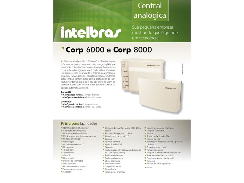 Pabx Intelbras sendo todos os modelos analógicos e digitais.
